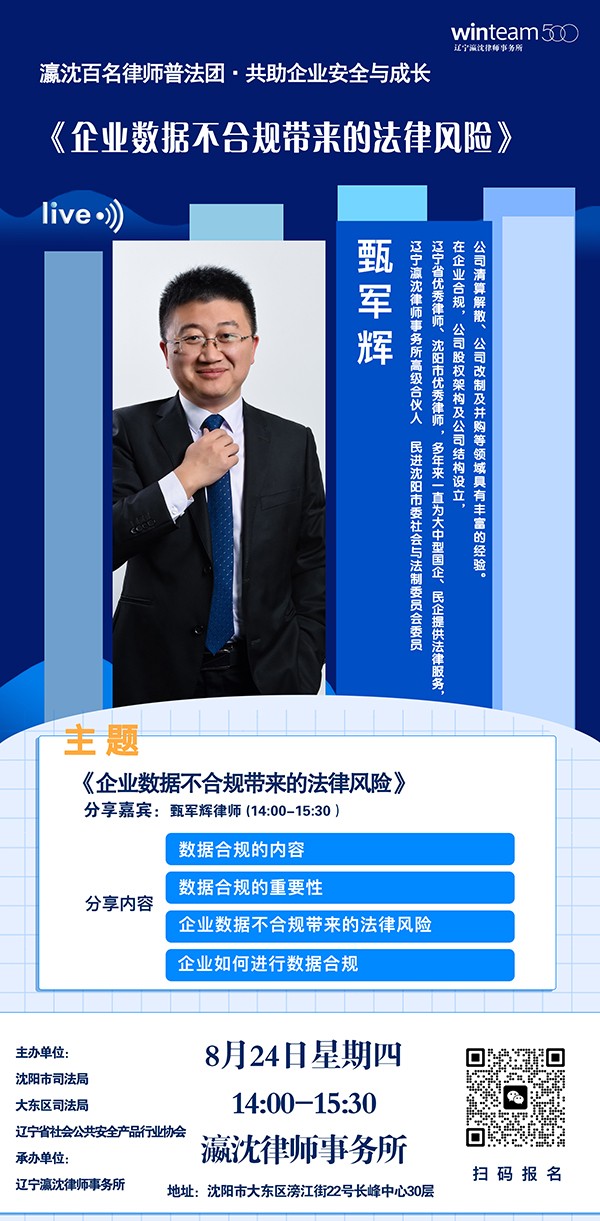 为助力协会成员稳健经营,伟德平台官网首页与辽宁瀛沈律师事务所的17支专业化业务团队、上百名律师,针对企业关心的问题,特邀行业专业律师——甄军辉律师,为协会成员进行详细解读!
