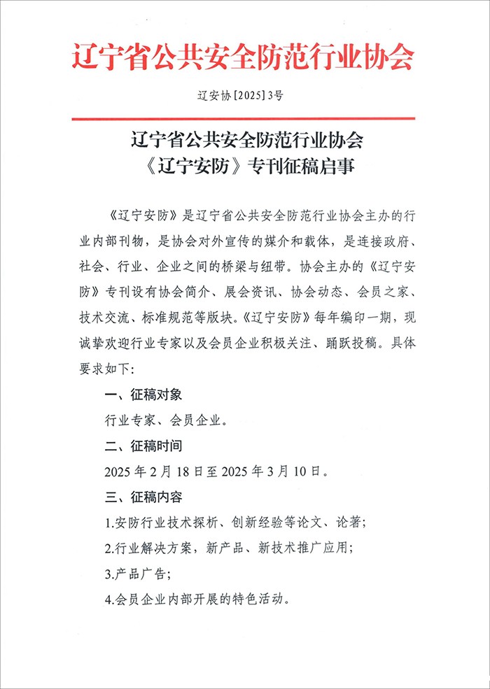 辽宁省公共安全防范行业协会《辽宁安防》专刊征稿启事