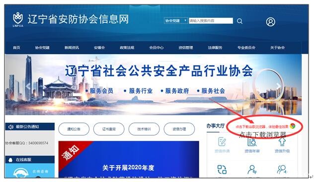 ,浏览器可从协会网站“办事大厅”右侧下载(如下图所示)。