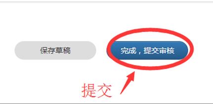 8、点击“完成,提交审核”后,提示“提交成功,等待审核”即成功上传资料。