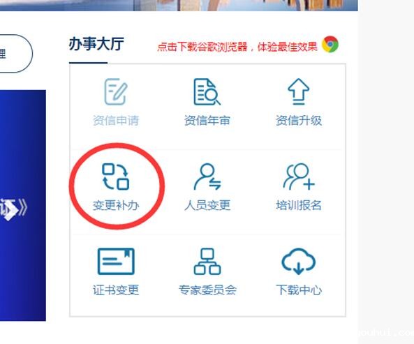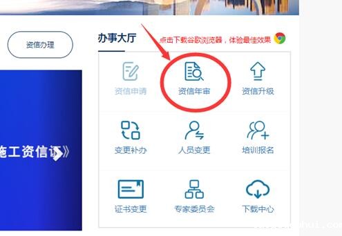 1、登录后,点击“办事大厅”中的“资信年审”。