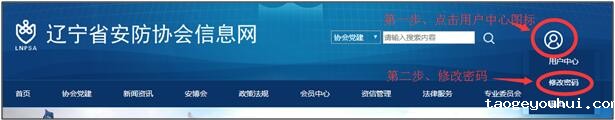 成功登录后,点击网站右上角“用户中心”图标,修改密码。如下图所示: