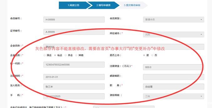 五、关于变更。补充企业基本信息、法人变更/公司名称变更/注册资金变更等,均在“变更补办”中提交申请,等待协会审核。