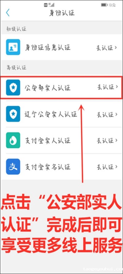 高级认证只需一次通过公安部实人认证即可,如公安部实人认证不能通过,可选择其他实人认证方式。