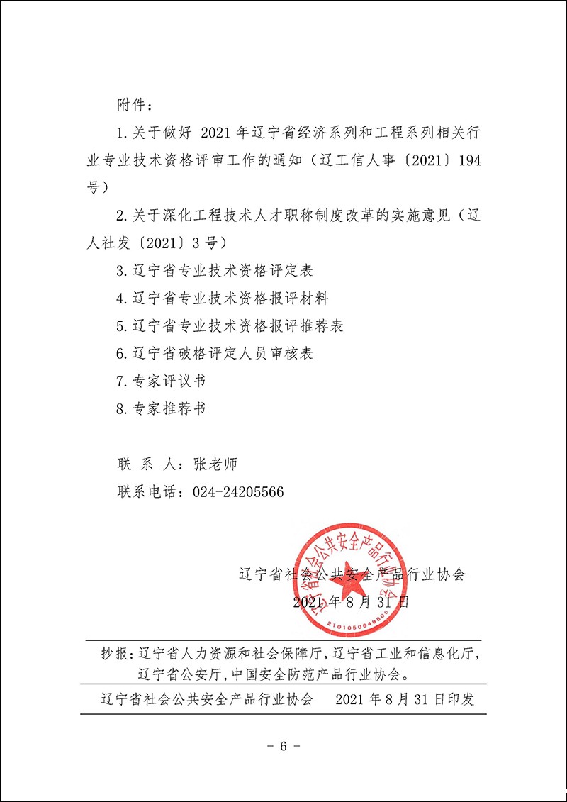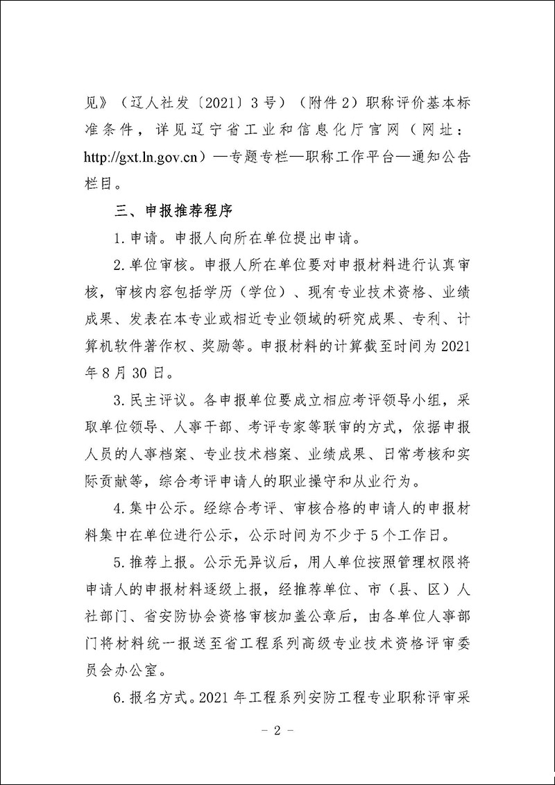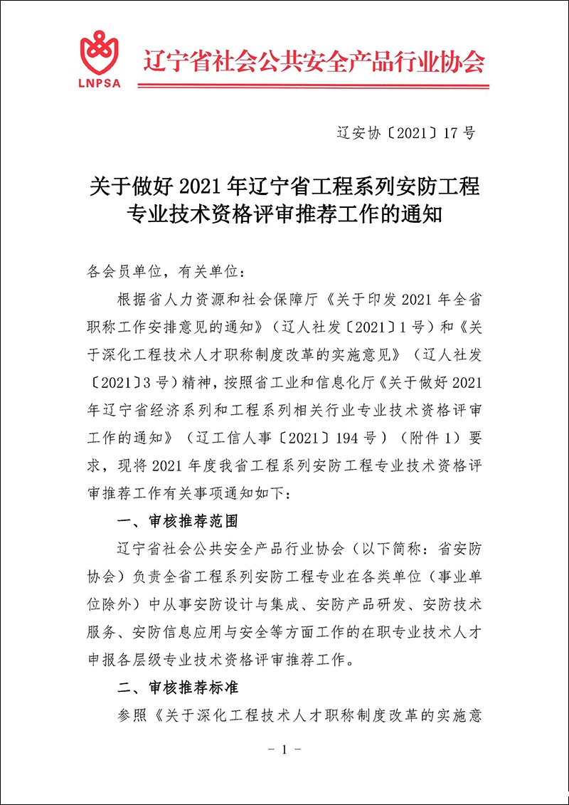 关于做好2021年辽宁省工程系列安防工程专业技术资格评审推荐工作的通知