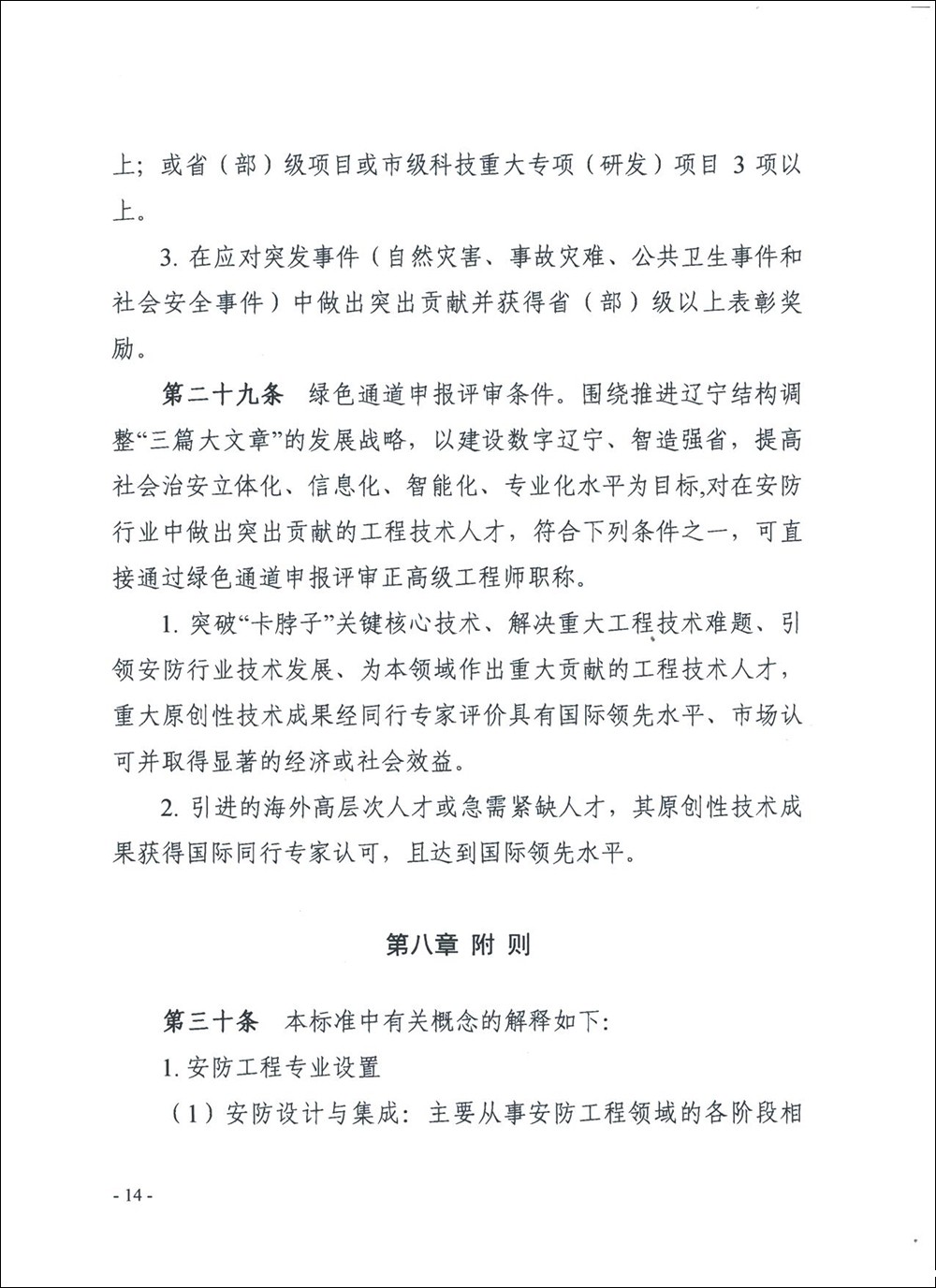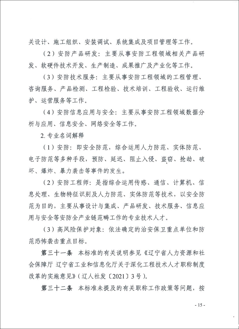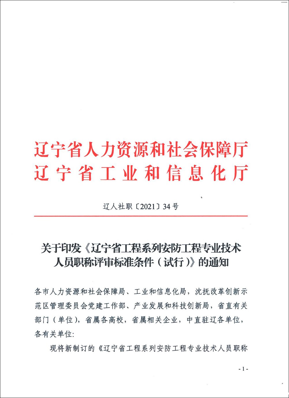 关于印发《辽宁省工程系列安防工程专业技术人员职称评审标准条件(试行)》的通知
