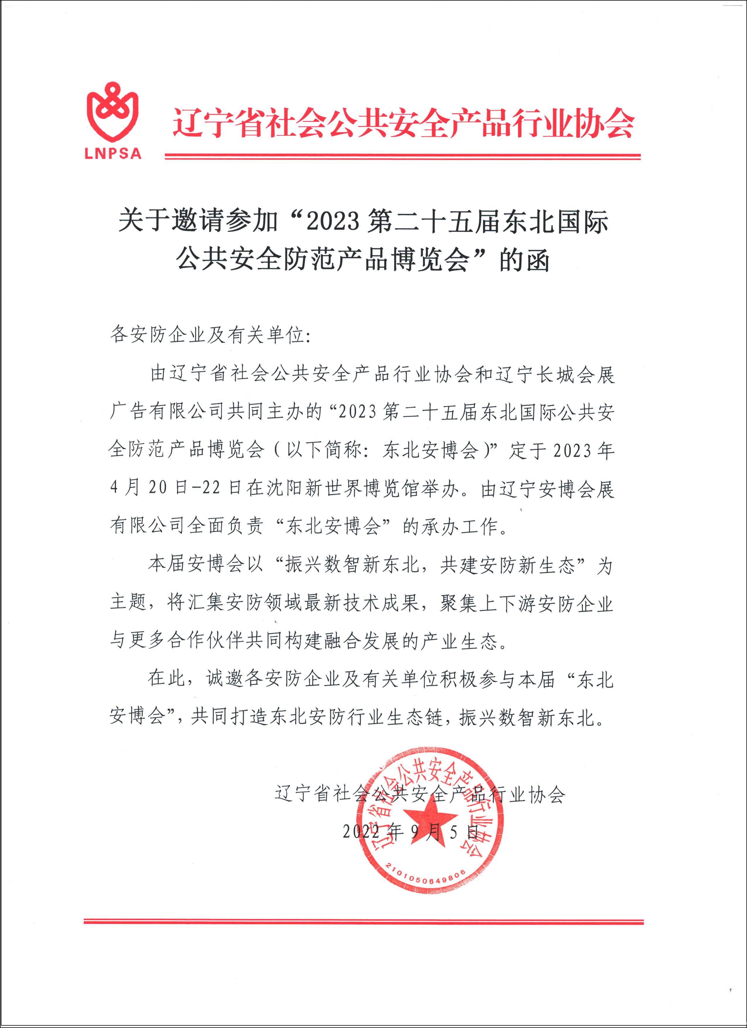 关于邀请参加“2023第二十五届东北国际公共安全防范产品博览会”的函