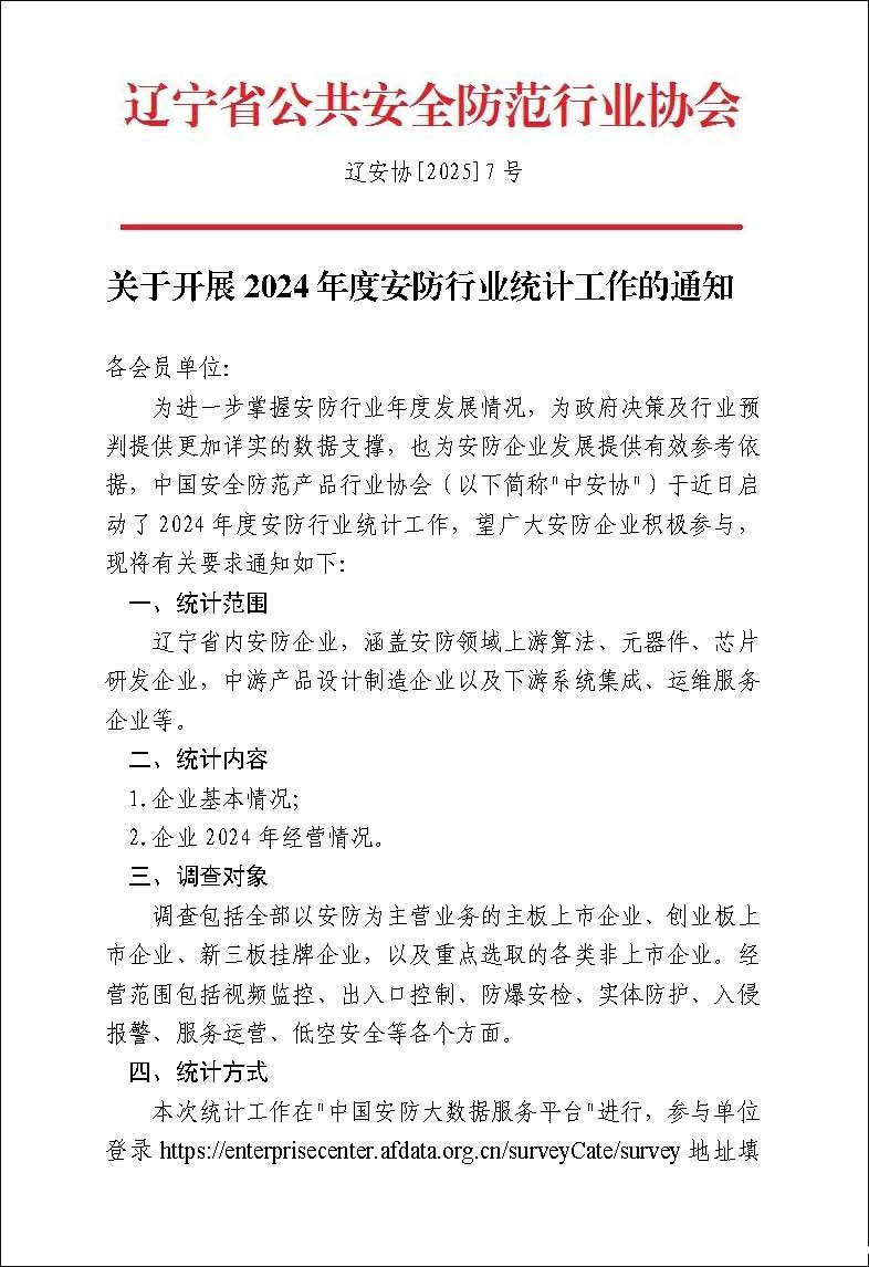 关于开展2024年度安防行业统计工作的通知