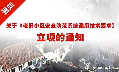 关于《老旧小区安全防范系统通用技术要求》立项的通知