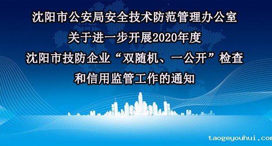 沈阳市公安局安全技术防范管理办公室《关于进一步开展2020年度沈阳市技防企业“双随机、一公开”检查和信用监管工作的通知》